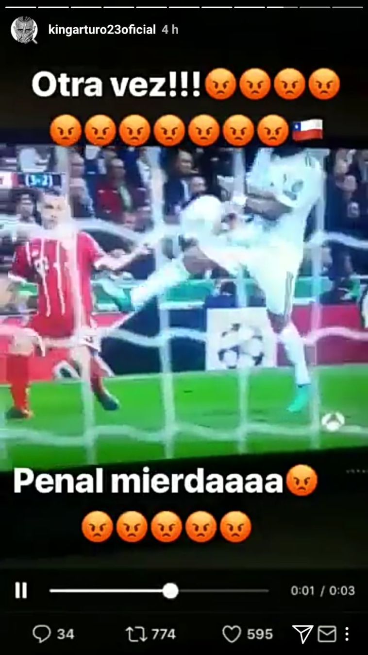 מי שהעביר ביקורת נוקבת עוד יותר ברשת החברתית היה ארתורו וידאל, קשר באיירן מינכן הפצוע בימים אלו שצייץ: "עוד פעם!! זה פנדל!", כטענה על כך ששוב טעויות שיפוט מכריעות לטובת ריאל ובסיום המשחק העלה תמונה נוספת וכתב על ריאל מדריד, "עכברושים".