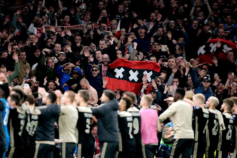 עונה היסטורית. שחקני אייאקס עם האוהדים בלונדון (Gettyimages)