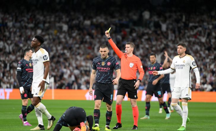 38 שניות משריקת הפתיחה, אורליאן טשואמני ביצע עבירה שבגינה ספג כרטיס צהוב שגורם להיעדרותו מהגומלין בשבוע הבא, ברנרדו סילבה כבש מאותו מצב נייח והמהפך הושלם תוך שתי דקות, כאשר אדוארדו קמאבינגה (12) ורודריגו (14) העלו את ריאל מדריד ל-1:2 על מנצ'סטר סיטי. במחצית השנייה פיל פודן (66) ויושקו גברדיול (70) הבקיעו בבעיטות ממרחק ואלופת אירופה הפכה בעצמה, אבל פדה ואלוורדה אמר את המילה האחרונה וקבע 3:3 מטורף לקראת הגומלין בשבוע הבא במנצ'סטר.