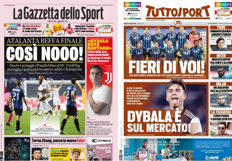 התחושות? עצב גדול וגאווה גדולה עוד יותר. "הגמר העצוב של אטאלנטה", נכתב ב"גאזטה דלה ספורט". "כמה זה כואב. פ.ס.ז' ביטלה את הכל. השחקנים בוכים אחרי תוצאה מדהימה, רק חבל שזה לא הפוך". אך בתקשורת האיטלקית לא היו יכולים שלא לפרגן – "אנחנו גאים בכם", נכתב ב"טוטוספורט" על רקע תמונה קבוצתית של חניכיו של גאספריני. ב"גאזטה" הוסיפו: "למרות ההפסד, השחקנים האלה יחזרו לברגמו עם ראש מורם מאוד!".