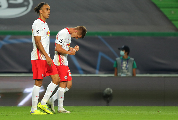 לייפציג: פטר גולאשי, לוקאס קלוסטרמן, דאיו אופאמקאנו, מרסל הלסטנברג, אנחליניו, קונרד ליימר (טיילר אדאמס, 72), מרסל סאביצר, דני אולמו (פטריק שיק, 83), קווין קאמפל, כריסטופר אנקונקו (אמאדו היידארה, 83), יוסוף פולסן.