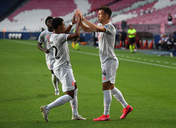 באיירן מינכן: מנואל נוייר, ג'ושוע קימיך, ג'רום בואטנג (ניקלאס זולה, 76), דויד אלאבה, אלפונסו דייויס (לוקאס הרננדז, 84), לאון גורצקה (קורנטן טוליסו, 84), טיאגו אלקנטרה, סרג' גנאברי (פיליפה קוטיניו, 75), תומאס מולר, איוואן פרישיץ' (קינגסלי קומאן, 67), רוברט לבנדובסקי.