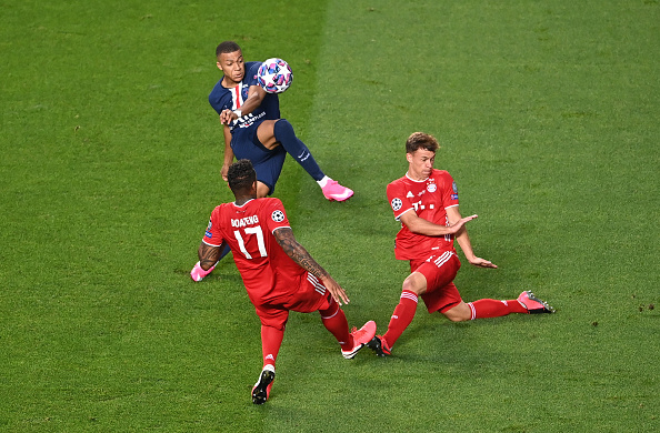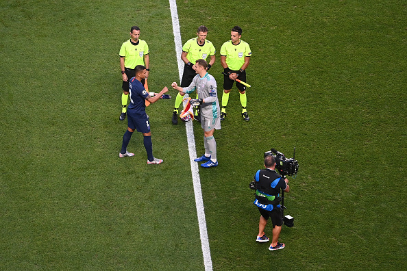 בדקה ה-14 הגיעה התקפה מסוכנת ראשונה של הצרפתים שנכנסו למשחק בזכות צמד הכוכבים. אמבפה קיבל את הכדור מול ג'ושוע קימיץ ושלח עקב הצידה לחואן ברנאט. הכדור חזר לצרפתי שבעט לשער אך נבלם. כעבור דקה שוב הגרמני ניצח ובלם את החלוץ. בדקה ה-18 ניימאר היה חייב להבקיע כשהגיע לאחד על אחד מול מנואל נוייר אבל קפטן באיירן הדף ובהמשך בלם את כדור הרוחב.
