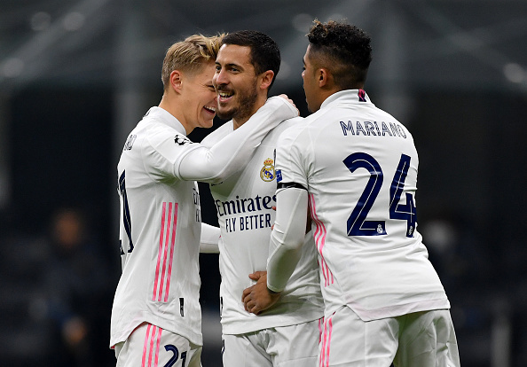 שני דברים מיוחדים קרו הערב עבור ריאל מדריד, מעבר לשלוש הנקודות שהשיגה. הבלאנקוס ניצחו לראשונה בסן סירו את אחת משתי הקבוצות המארחות בו, אינטר ומילאן. בנוסף, אדן הזאר כבש בליגת האלופות לראשונה מזה שלוש שנים, עם פנדל מוצלח שהעלה את ריאל ליתרון מוקדם. רודריגו הצעיר, שהכריע את המפגש הקודם בין הקבוצות עם השער שקבע 2:3 דרמטי, עלה גם הפעם מהספסל ושוב הצדיק את הקרדיט מזינדין זידאן, כשהבקיע את השני של הלבנים. תוסיפו לכך את העובדה שהקבוצה שלו הסתדרה ללא סרחיו ראמוס הפצוע, והמאמן צרפתי יכול לצאת מרוצה מאוד מערב החזרה שלו למקום בו החל את השושלת שלו כמאמן הקבוצה, עם הזכייה בגביע אירופה ב-2016 אחרי שגבר על אתלטיקו מדריד בגמר.