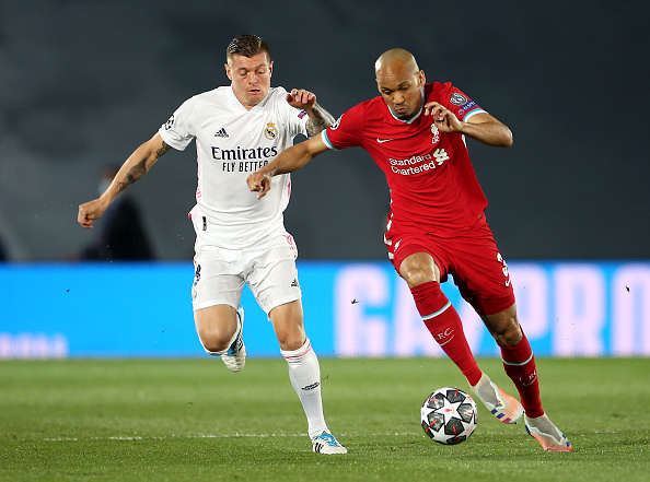 דקה 27, 0:1 לריאל מדריד: קרוס שלח מסירה ארוכה מדהימה לוויניסיוס, שהקדים את שחקני ההגנה של ליברפול והכניע את אליסון כדי להעלות את הבלאנקוס ליתרון.