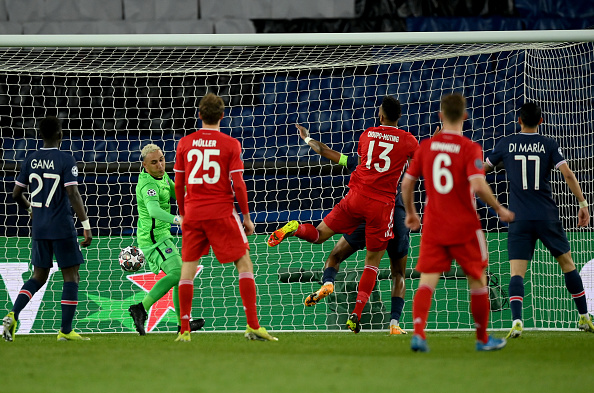 באיירן ידעה שהסיכויים אינם לטובתה מכיוון שרק שלוש קבוצות מתוך חמישים האחרונות שהפסידו בביתן את המשחק הראשון במפגש ליגת אלופות כפול הצליחו להפוך את התוצאה בגומלין והיא עוד הגיעה ללא הכוכב הגדול רוברט לבנדובסקי שנפצע ובלי סרג' גנאברי שנדבק בקורונה, אבל בכל זאת עלתה ליתרון ראשון כשבדקה ה-40 צ'ופו מוטינג ניצל הדיפה רעה של קיילור נבאס כדי לנגוח מקרוב את ה-0:1.