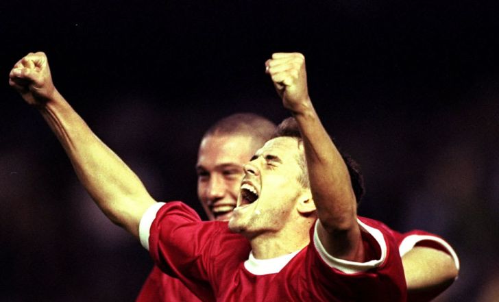 מייקל אואן חוגג שער בליברפול בשנת 1998 | GettyImages