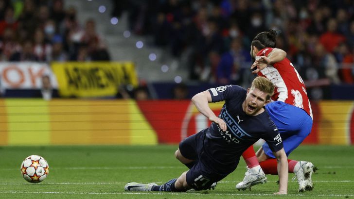 שחקן מנצ'סטר סיטי קווין דה בראונה מול שחקן אתלטיקו מדריד פליפה | רויטרס