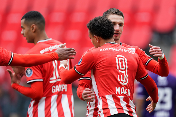 כבר בדקה התשיעית, אוליבייה בוסקאלי מסר למאלן שדהר באגף שמאל, השאיר מאחוריו שומר והכניע את שוער האורחת מקרוב כדי לקבוע 0:1 לפ.ס.וו איינדהובן. בדקה ה-21 בוסקאלי שוב בישל, הפעם בהגבהה לרחבה – דנזל דמפריס התרומם גבוה ונגח פנימה: 0:2 לאדומים-לבנים.