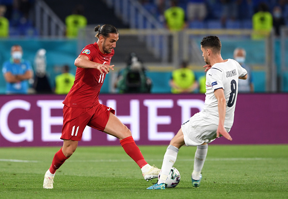 דקה 35: טורקיה מתחילה להתעורר. בוראק אילמאז נכנס מצד שמאל והעביר רוחב שנהדף לא טוב על ידי דונארומה, אך שחקן טורקי לא הגיע לכדור החוזר.