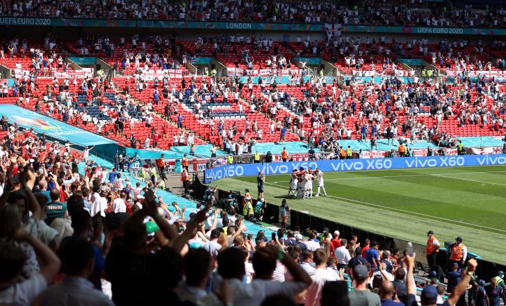 יש לציין כי זה היה המשחק הראשון המאוכלס על ידי אוהדים בוומבלי מאז נובמבר 2019, אליו הגיעו 18,497 אוהדים. ללא קשר לאירוע שהתרחש היום, באופ"א מקווים שכמות האוהדים באצטדיון שיארח את הגמר תגדל לכ-90 אלף צופים ב-11 ביולי.