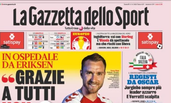 באמצעות סוכנו, אריקסן מסר ל"גאזטה דלו ספורט" את תגובתו לאירוע המטלטל שחווה: "תודה לכולם. אני רוצה לומר שלא אוותר. אני מרגיש הרבה יותר טוב עכשיו, אבל אני רוצה להבין מה קרה לי. אני רוצה להודות לכולם על מה שהם עשו בשבילי", כך צוטט קשרה של אינטר בשער העיתון האיטלקי.