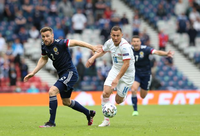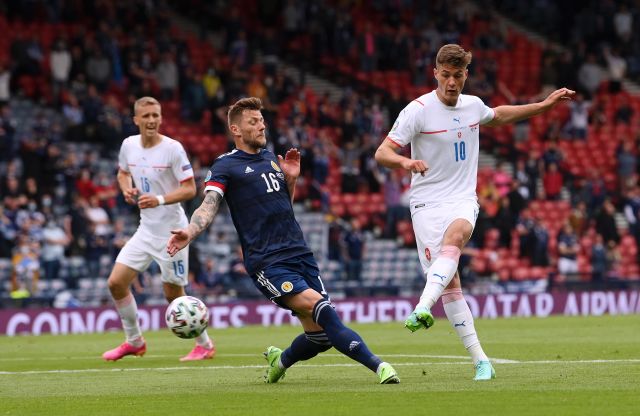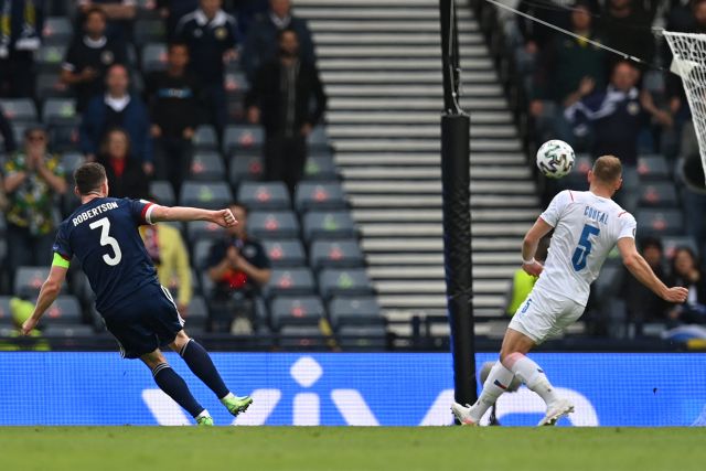 דקה 32 – התקפה מהירה של סקוטלנד הסתיימה במצב מסוכן בצד שמאל – אנדי רוברטסון היה חופשי לחלוטין אבל למרכז השער והקל את החיים על תומאש ואצ'ליק שהדף לקרן.