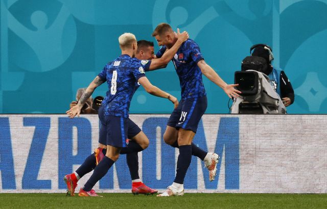 שחקני סלובקיה חוגגים | EVGENIA NOVOZHENINA/POOL/AFP via Getty Images