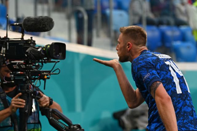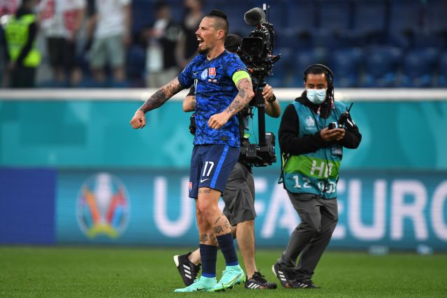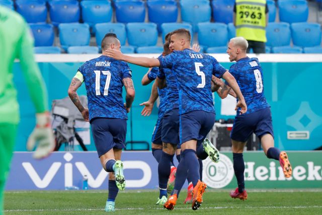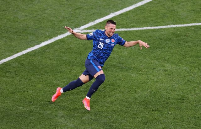 דקה 69 – 1:2 לסלובקיה! מילאן שקריניאר עלה לעזרת ההתקפה בכדור קרן, עצר את הכדור באומנות ובעט בסיבוב כמו חלוץ אמיתי, 1:2!