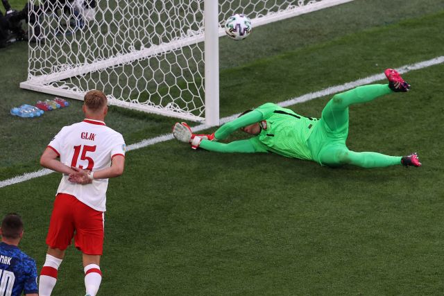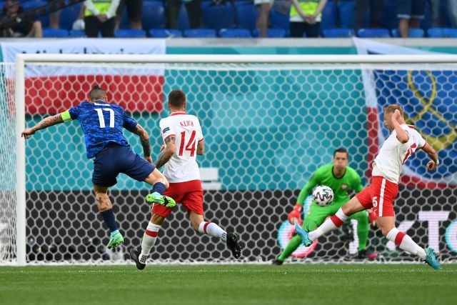דקה 34 – הפולנים מתקשים לייצר מצבים איכותיים אז מנסים לבעוט מרחוק. גז'גוז' קריכוביאק ניצל אי הבנה בין שני שחקני סלובקיה אבל בעט גבוה מעל השער.