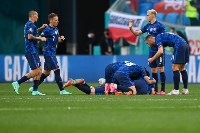 שחקני נבחרת סלובקיה חוגגים | Anatoly Maltsev – Pool/Getty Images