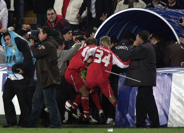 במשחק הראשון, ב-12 בנובמבר 2005, שווייץ ניצחה 0:2. הנבחרת של פתיח טרים התלוננה אחרי המשחק על כך שהיא ספגה יחס משפיל, מהרגע שנחתה בברן ועד שעזבה, וכאשר השוויצרים הגיעו לאיסטנבול ארבעה ימים לאחר מכן לגומלין, המארחת קיוותה לנקמה, על הדשא וגם מחוצה לו. "אין פלא שאופ"א דחתה את ההצעה הטורקית לארח את יורו 2012", נכתב בצהובון השווייצרי "לה מאטין", אחרי שהעיתונאים ראו את היחס לשחקני הנבחרת שלהם.