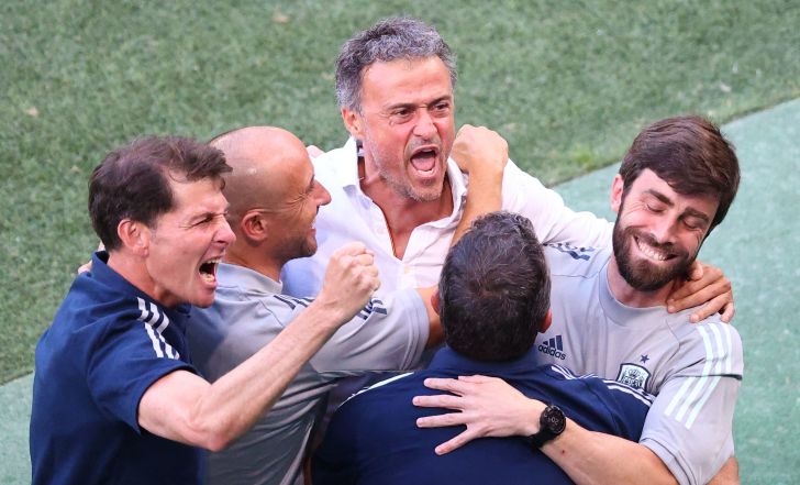 לואיס אנריקה נשאל האם זה המשחק הכי אינטנסיבי ומרגש שחווה וענה: "זה המשחק הכי טוב ביורו, צריך למחוא כפיים לשתי הנבחרות. אני שמח על היכולת של הנבחרת להגיב ולהתגבר על הקשיים". כשנשאל על הטעות של אונאי סימון, ענה: "כדורגל הוא משחק של טעויות. אונאי לימד את כולנו לקח גדול בגישה שלו אחר הטעות. דיברתי איתו במחצית, הוא התעשת".