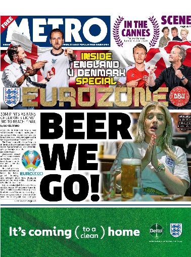 "מוכנים לשאוג", נכתב ב"דיילי טלגרף". ב"דיילי מירור" הציגו כמה תמונות מרגעים אייקונים של אצטדיון ומבלי הישן. "לחזור הביתה", נכתב בשער "גרדיאן" לאות הזדהות עם שיר האוהדים המיתולוגי. "Beer we go", הייתה הכותרת היצירתית ב"מטרו" שם צופים למעלה מ-30 מיליון ליטרים של בירה יוזמנו הערב. שלושה מכתבי ה"דיילי מייל" בחרו ב-11 הטובים ביותר שראו בנבחרת והארי קיין נמצאים בהרכב של שלושתם. ב"גרדיאן" נכתב עוד: "היום המיוחל סוף סוף הגיע, איך נשמור על רוגע עד לשריקת הפתיחה?".