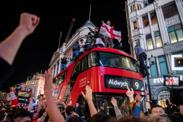 כאמור, ברחבי הממלכה מיליונים יצאו הלילה לחגוג את העלייה של אנגליה לגמר וברחובות לונדון נרשם כאוס מוחלט, כאשר אלפי אוהדים השביתו את התנועה, טיפסו על גגות האוטובוסים הדו קומתיים בכיכר פיקדילי. עם זאת, האירוע עבר ללא נפגעים ונזק משמעותי ככל שידוע.