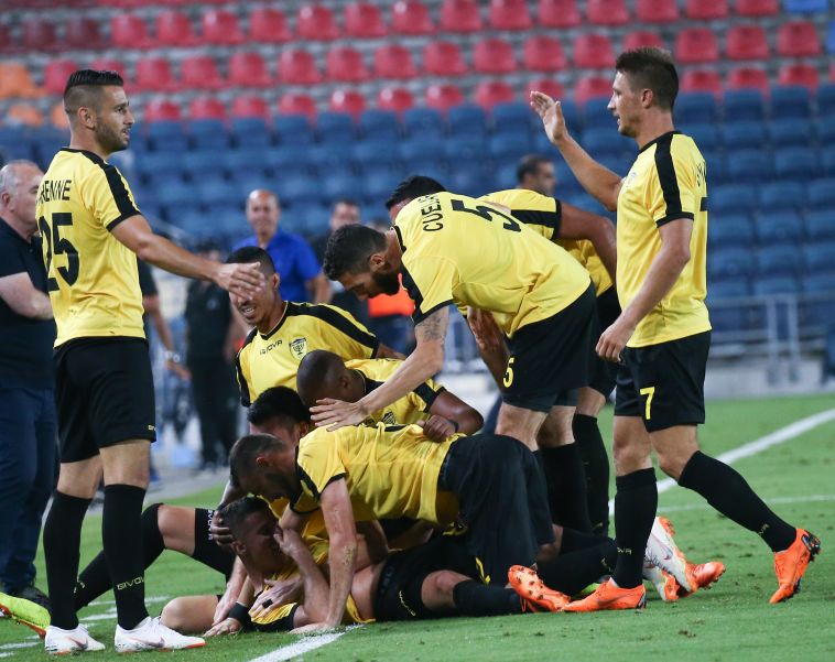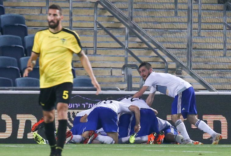 שחקני בית"ר חוגגים את שער היתרון (דני מרון)