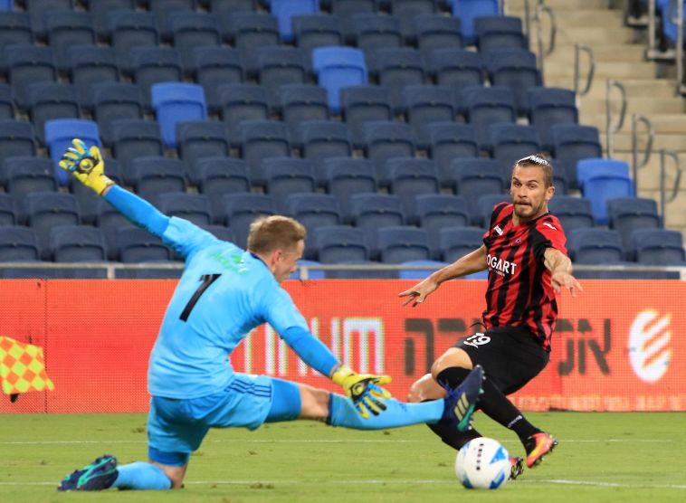דקה 30: הלחץ של חיפה נמשך, פלקושצ'נקו בעט מ-18 מטרים, השוער זינק וקלט.