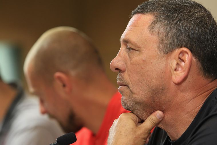 ניר קלינגר ותמאש במסיבת העיתונאים (ערן לוף)