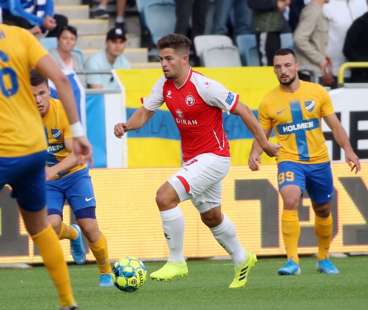 סמוך להפסקה, רמזי ספורי שלח את האסלביינק בכדור עומק, ההולנדי ניצל את הכוח הפיזי הרב שלו, השתלט על הכדור, עבר את הבלם אבל רגע לפני הבעיטה הכדור נלקח ממנו.