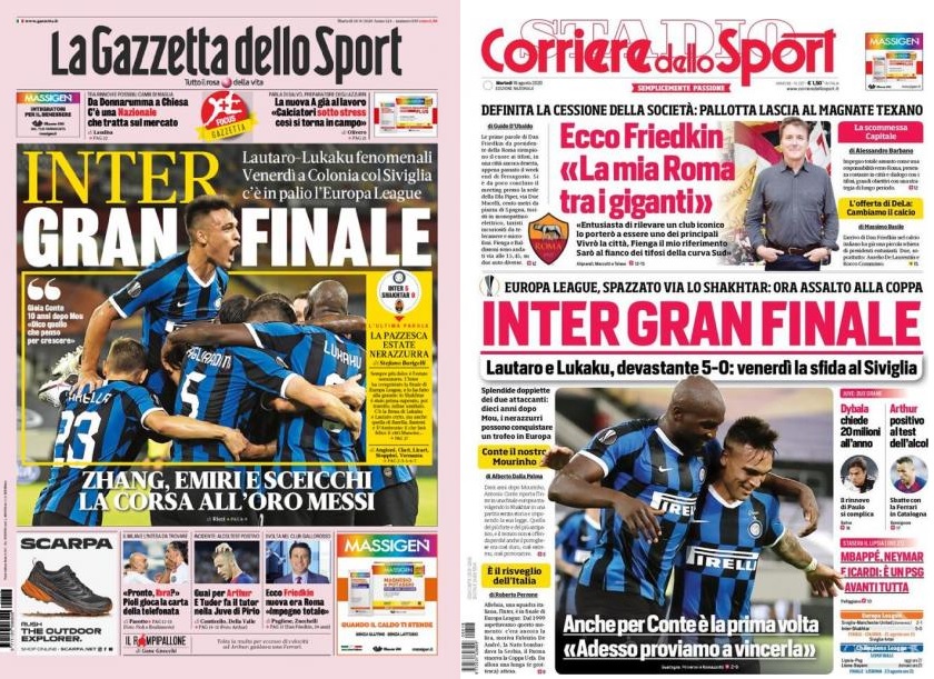 בכלי התקשורת האיטלקיים יצאו מגדרם. "איזה גדולה את אינטר!", נכתב ב"טוטוספורט". "עשר שנים מאז הטרבל, הנראזורי מריחים גביע אירופה נוסף. שחטאר לא עמדה בפרץ". "לאוטרו ולוקאקו היו פנומנליים", נכתב ב"גאזטה דלה ספורט", "כבר לא יכולים לחכות לגמר נגד סביליה בקלן". גם ב"קוריירה דלה ספורט" החמיאו לחלוצים: "זה היה משחק מפואר שלהם. קונטה יודע שעם שניהם הוא יכול לזכות בתואר".
