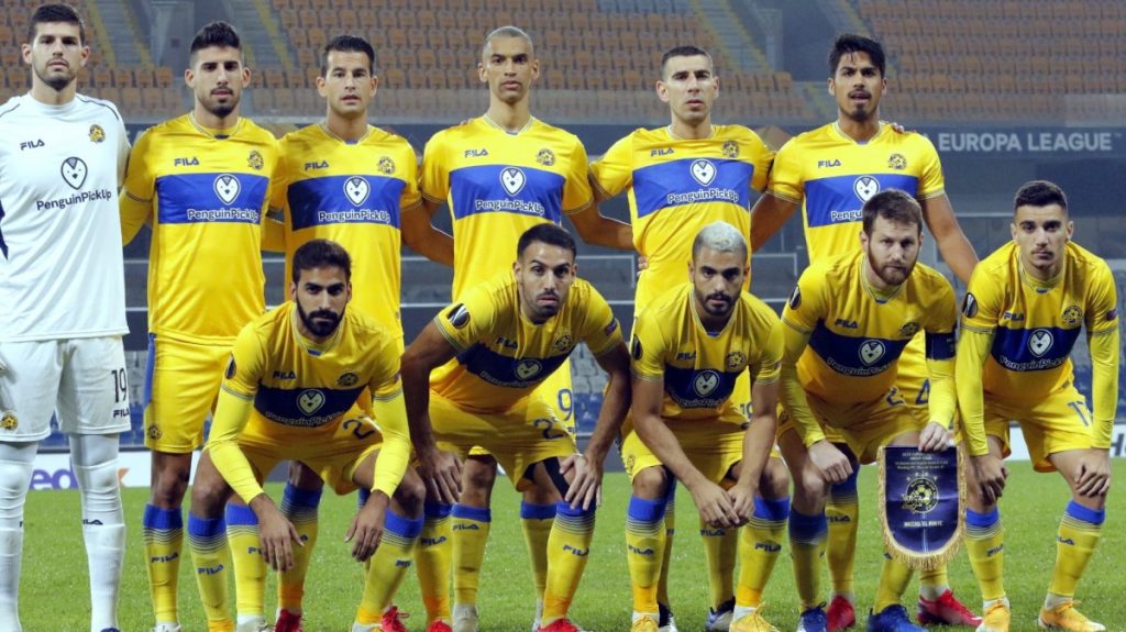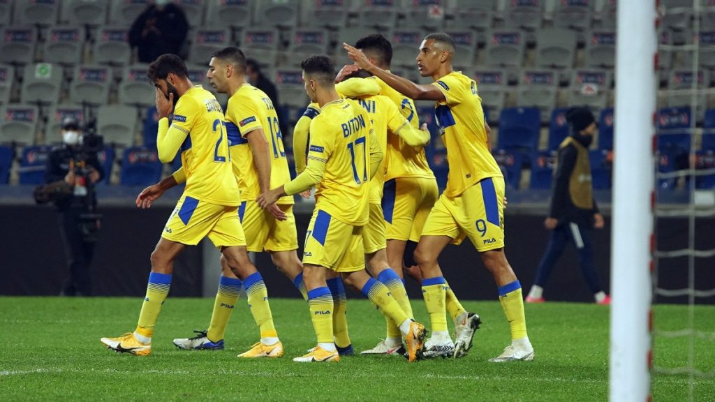 הצהובים פתחו את המשחק מצוין עם שליטה מוחלטת בכדור ואיימו לא מעט על השער בעיקר בזכות דור פרץ. בדקה ה-20 מכבי עלתה ליתרון מוצדק: דן ביטון שלח מסירת עומק נהדרת לאופיר דוידזאדה שהופל ברחבה, ויונתן כהן כבש מהנקודה הלבנה את שערו השני בשלב הבתים, 0:1 למכבי תל אביב.
