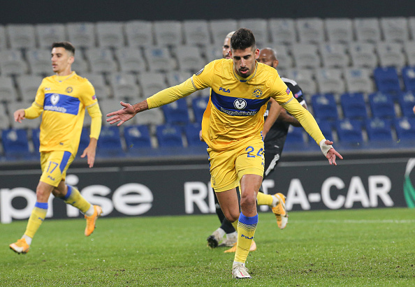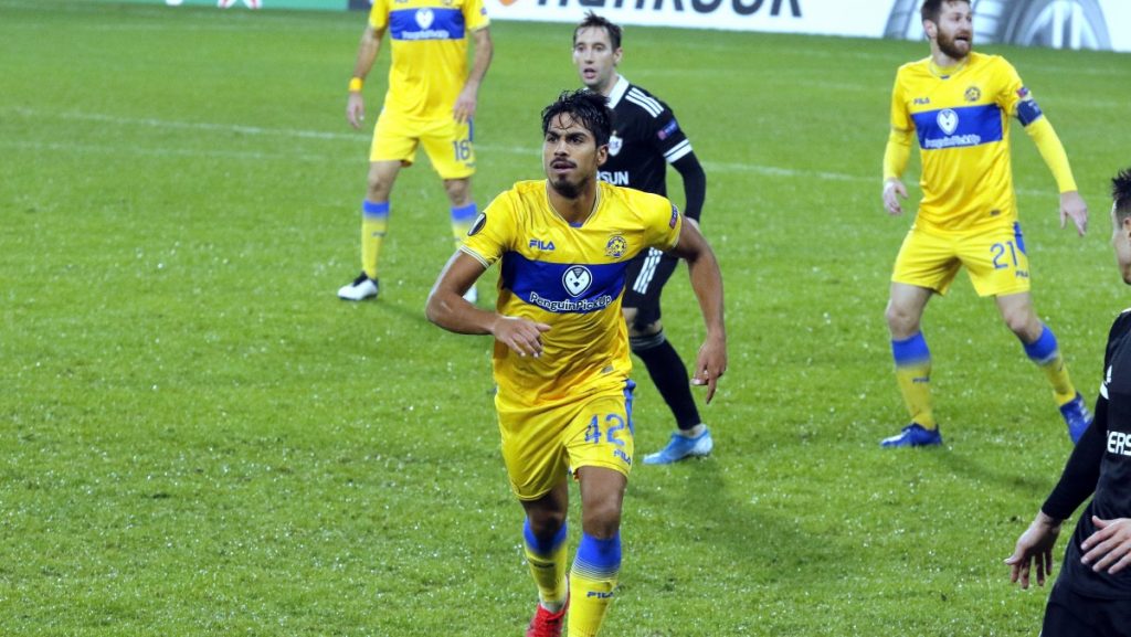 בדקה ה-22 הצהובים זכו לפנדל. דן ביטון שלח הקפצה נהדרת לרחבה, יונתן כהן ניסה לבעוט אך נדחף על ידי דונלד גרייב והשופט הצביע על הנקודה הלבנה. יונתן כהן לא התבלבל ודייק בפנדל, 0:1 למכבי תל אביב, שער שני לחלוץ בשלב הבתים.