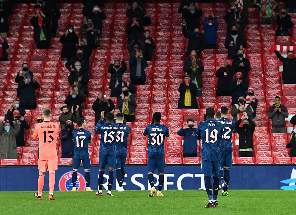 ארסנל הבטיחה אתמול (חמישי) את ראשות ב' בית בשלב הבתים של הליגה האירופית, כאשר הביסה בבית 1:4 את ראפיד וינה, שמרה על מאזן מושלם, אבל זה פשוט הדבר האחרון שמעניין היום מישהו באנגליה – שנכנסה לטירוף. בפעם הראשונה אחרי תשעה חודשים, הקהל חזר למגרשים ו-2,000 אוהדים הורשו להיכנס לאצטדיון האמירויות.