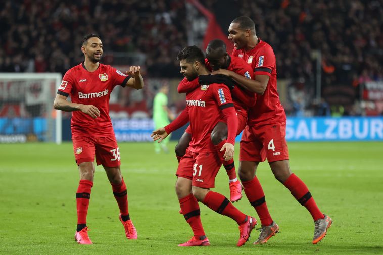 שחקני באייר לברקוזן חוגגים (Lars Baron/Bongarts/Getty Images)