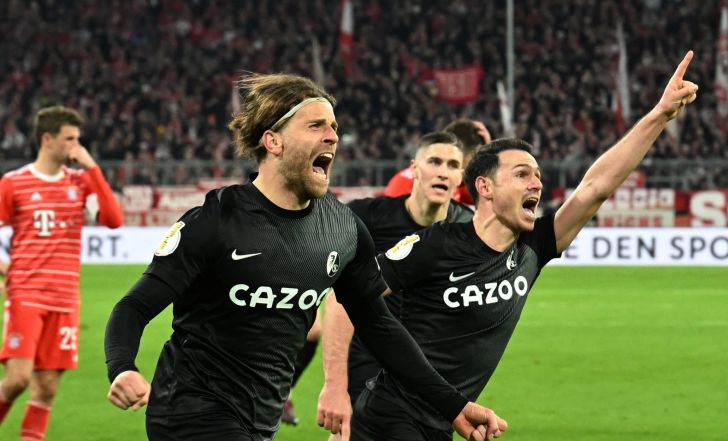 שלב רבע גמר הגביע הגרמני יצא לדרך הערב (שלישי) עם סנסציה גדולה: פרייבורג הצנועה ניצחה את באיירן מינכן 1:2 והדיחה אותה בשלב מוקדם מאוד. זה היה ניצחון החוץ הראשון אי פעם של פרייבורג על האימפריה הבווארית. איינטרכט פרנקפורט הייתה הראשונה שמבטיחה את מקומה בחצי הגמר עם ניצחון על אוניון ברלין.