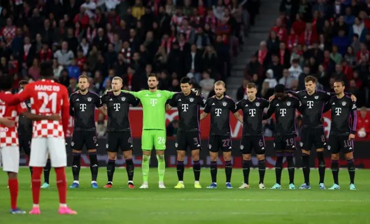 שחקני באיירן מינכן עומדים דקת דומיה לזכר הטבח בישראל