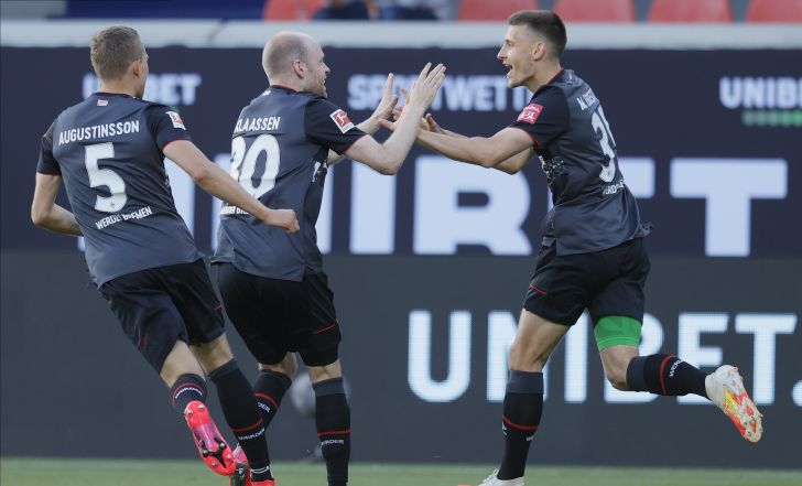 הירוקים סיימו את העונה במקום ה-16 והראו מדוע היו מועמדת לירידה כל העונה בצמד המשחקים מול היידנהיים, שסיימה שלישית בבונדסליגה השנייה. ברמן הובילה 0:1 החל מהדקה השלישית בזכות שער עצמי פשוט אומלל של נורמן טויירקאוף, שבעט אל הרשת שלו מ-15 מטרים וביצע טעות ענק.