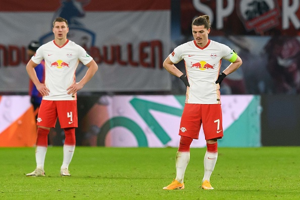 ר.ב לייפציג: פיטר גולאצ'י, ווילי אורבן, דאיו אופמקאנו, מרסל הלסטנברג, טיילר אדאמס, מרסל סאביצר (לוקאס קלוסטרמן, 62), אנחליניו, אמאדו היידארה (הי-צ'אנג וואנג, 71), אמיל פורסברג (אלכסנדר סורלות', 62), דני אולמו, יוסוף פולסן (לזאר סמארדז'יץ', 88).
