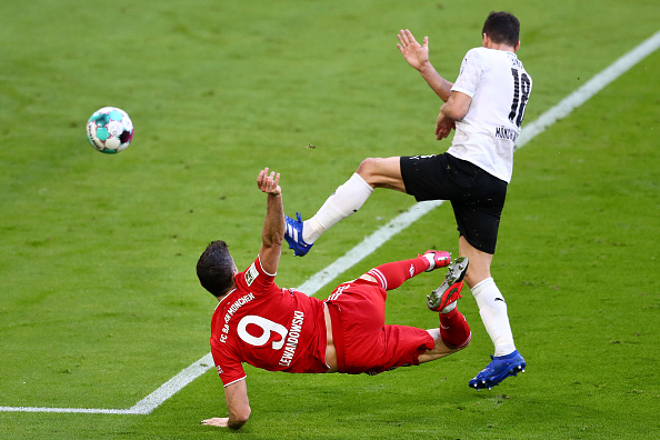 בדקה ה-23, אחרי שני מצבים מסוכנים מצד לבנדובסקי וקינגסלי קומאן, תומאס מולר הכפיל לאחר בישול של ג'מאל מוסיאלה. בדקה ה-34 נמשך השואו של הפולני שכבש שער אדיר בחצי מספרת – שערו ה-200 בבונדסליגה במדי באיירן. ככה עושים את זה.