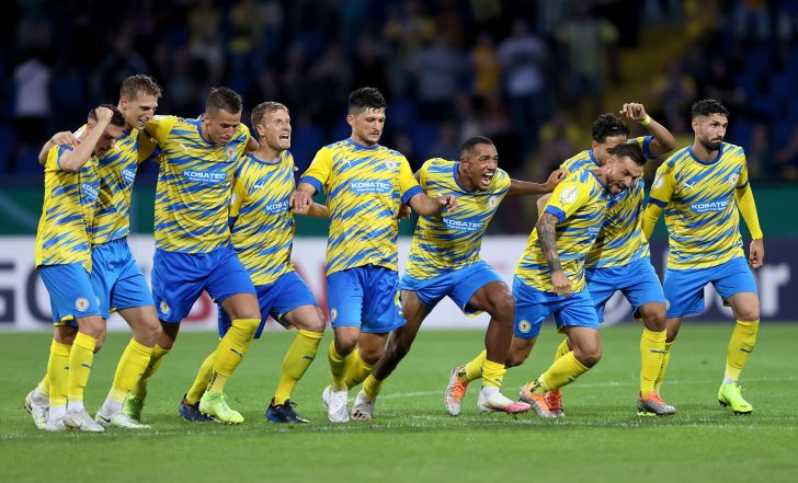 הקבוצה מליגת המשנה כבר הדיחה לפני שנתיים את הרטה ברלין כשניצחה אותה 4:5, והערב שחזרה את ההישג, כמעט אחד לאחד. הברלינאים הוליכו 0:2 במחצית ונראה היה שהם בדרך לטיול קליל לשלב הבא, אך בדקה ה-63 בריאן ברנדט (63) וליאון לוברבאך (66) מחקו את היתרון של האורחת. המשחק נגרר להארכה שם עמנואל פראי ההולנדי קבע מהפך כבר בדקה הראשונה, אך לוקאס טרוסאר (103) ודודי לוקבאקיו הבלגי (106) החזירו תוך שלוש דקות את היתרון להרטה.