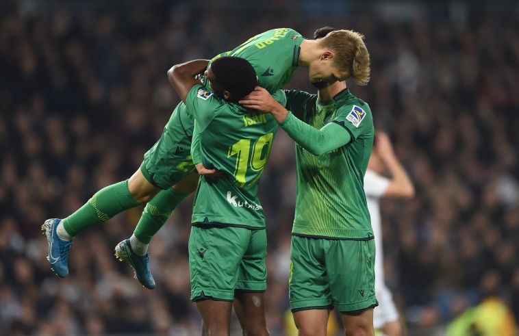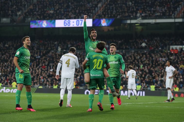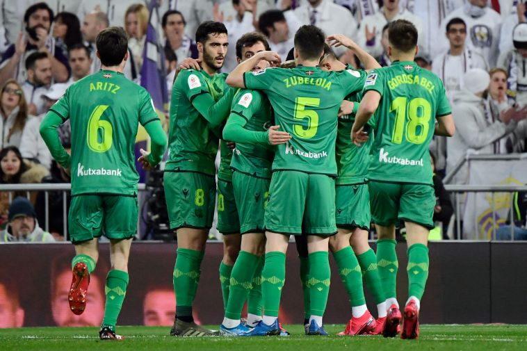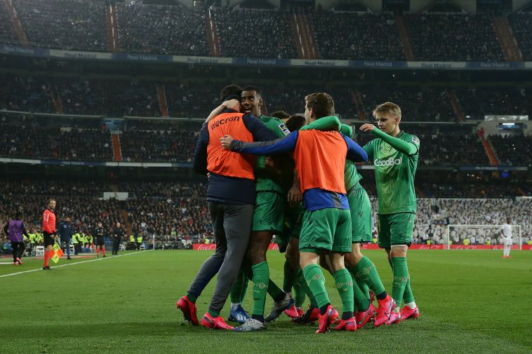 שחקני סוסיאדד חוגגים. מוליכים בצדק בברנבאו (JAVIER SORIANO/AFP via Getty Images)