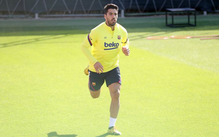 סוארס. הפתיע את כולם באימונים (Handout/FC Barcelona via Getty Images)