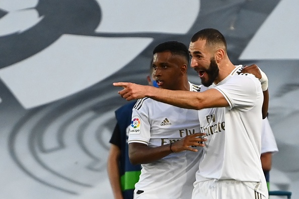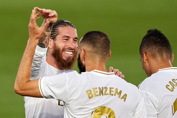 הבלאנקוס פתחו את המשחק על מי מנוחות, אך בדקה ה-29 מי אם לא קארים בנזמה היה שם כדי לפרוץ את הסכר: המהלך החל בזכות חילוץ כדור אדיר של קאסמירו הברזילאי – שמסר למודריץ', שהכניס כדור עומק לצרפתי שלא התקשה מול השוער סרחיו אסנחו וחגג את ה-20 שלו העונה בליגה הספרדית וקבע את תוצאת המחצית.