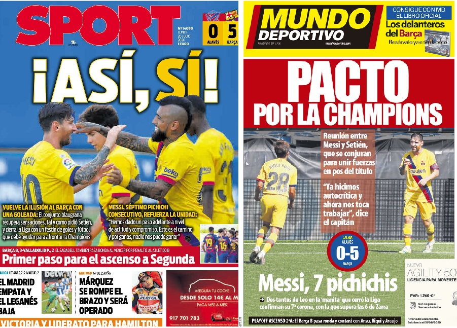 "כן, ככה משחקים!", הייתה הכותרת בשער "ספורט". "בארסה החזירה את התחושות הטובות בדיוק כפי שסטיין ביקש וסגרה את הלגיה עם חגיגת שערים ויכולת נפלאה שצריכה לעזור לה לקראת ליגת האלופות". "ברית חדשה לפני הצ'מפיונס", הייתה הכותרת ב"ספורט". "בארסה נפרדת מהעונה עם הראש מורם". הצעירים ריקי פוץ' ואנסו פאטי זכו לשבחים: "אוצר אלוהי שחייב לתת אופטימיות לגבי העתיד", נכתב. פוץ' היה לשחקן הצעיר ביותר מאז טיאגו שבישל שני שערים במשחק ליגה – בגיל 20 ו-304 ימים.