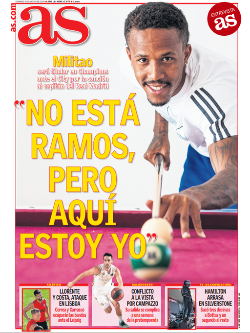 מי שיחליף את הקפטן הוא הבלם אדר מיליטאו, שחקן ההגנה היקר בהיסטוריה של ריאל מדריד שרשם העונה 19 הופעות בעונת הבכורה שלו. מיליטאו סיפק ראיון נרחב ל"אס" והביע ביטחון גדול לקראת המשחק: "מדרידיסטאס, נגד סיטי לא יהיה לנו את הקפטן שלנו, אבל אני אהיה שם. אני הולך לשחק עם הלב ולהציג משחק גדול. תסמכו עליי, ננצח ונעבור", אמר. כשנשאל על העונה הנוכחית שלו חילק לעצמו את הציון 7.