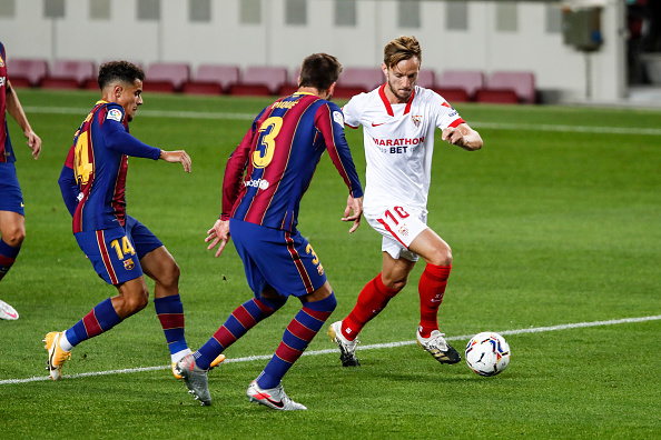 מנגד, סביליה הגיעה למשחק הזה מוכנה למשחק הלחץ של ברצלונה, כאשר אקס הבלאוגרנה איבן ראקיטיץ' פתח בהרכב של ז'ולן לופטגי. שמונה דקות מהפתיחה הקרואטי ראה גם את חבריו עולים ליתרון במשחק, כאשר לוק דה יונג ניצל את העובדה שהיה חופשי במרכז הרחבה והפציץ את הרשת של נטו.