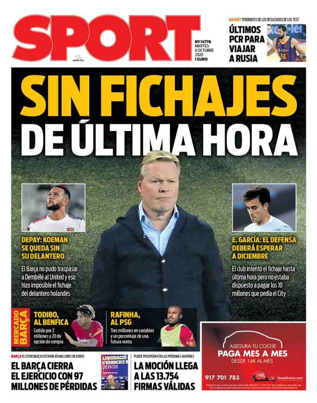 "בלי רכישות ברגע האחרון", נכתב בשער "ספורט". "בארסה לא הצליחה לצרף את שני היעדים הגדולים של קומאן", ביקרו ב"מונדו דפורטיבו", שם נכתב בעיקר על הצרות בהגנה. "לקומאן יש רק שלושה בלמים מרכזיים בקבוצה", נכתב, כאשר מדובר בג'רארד פיקה, קלמנט לנגלה ורונאלד ארואחו הצעיר שנרשם אמש לליגה הספרדית. בעיתון התעלמו, בשוגג או בכוונה מנוכחותו של סמואל אומטיטי הצרפתי, אולי בשל פציעותיו הרבות. "בארסה נופלת בגדול, פיאסקו ביום האחרון", נכתב ב"אס" המזוהה עם מדריד. "לא רק שלא הגיע רכש – עוסמאן דמבלה ואומטיטי נשארו. קומאן בוודאי לא מרוצה, היו לא מעט מהלכים כושלים".