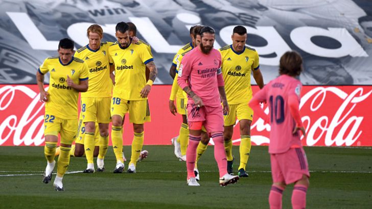 קאדיס הקטנה לא עשתה חשבון ופשוט הציגה שליטה מוחלטת. כבר בדקה הראשונה סרחיו ראמוס הציל שער מהקו אחרי בעיטה של אלברו נגרדו, והגנת הבלאנקוס התפרקה שוב ושוב. האורחת הייתה יכולה להוביל בהפרש של שלושה שערים. בדקה ה-16 זה קרה כשאנטוני לוסאנו הגיע למצב של אחד על אחד והכניע את קורטואה. החלוץ המהיר היה יכול להשלים צמד אך בעט חלש והחמיץ מול שער ריק.