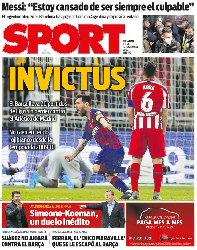 בתוך כך הקבוצה תחל היום בהכנות לקראת המשחק הקשה נגד אתלטיקו מדריד ביום שבת. בתקשורת המקומית התפארו במאזן המיוחד של ברצלונה שלא הפסידה כבר עשור לקולצ'ונרוס – כלומר 20 משחקי ליגה. ההפסד האחרון היה בסיבוב השני בעונת 2009/10. נראה שמשחק נגד אתלטיקו הוא בדיוק מה שמסי צריך כדי להוציא עצבים. לפני הפגרה הוא כבש צמד נגד בטיס, כולל שער שדה ראשון. אתלטיקו היא למעשה היריבה נגדה מסי כבש הכי הרבה שערים בקריירה (32) פרט לסביליה.