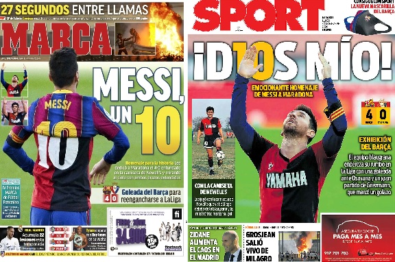 האבסורד הוא שהמועדון צפוי להיקנס ב-3,000 יורו על המחווה האסורה לפי הנחיות פיפ"א. בכל מקרה, ברחבי העולם מתמוגגים. "מסי חותם קשר נצחי עם מראדונה", נכתב ב"ספורט", כשבשער העיתון הייתה הכותרת "אוו מיי גאד"". גם ב"מארקה" במדריד ידעו לפרגן: "מסי הוא 10", נכתב בשער העיתון. מסי עצמו הקדיש פוסט לדייגו באינסטגרם עם תמונה של שניהם מניפים ידיים בחולצת ניואלס וכתב: "לתמיד, דייגו".